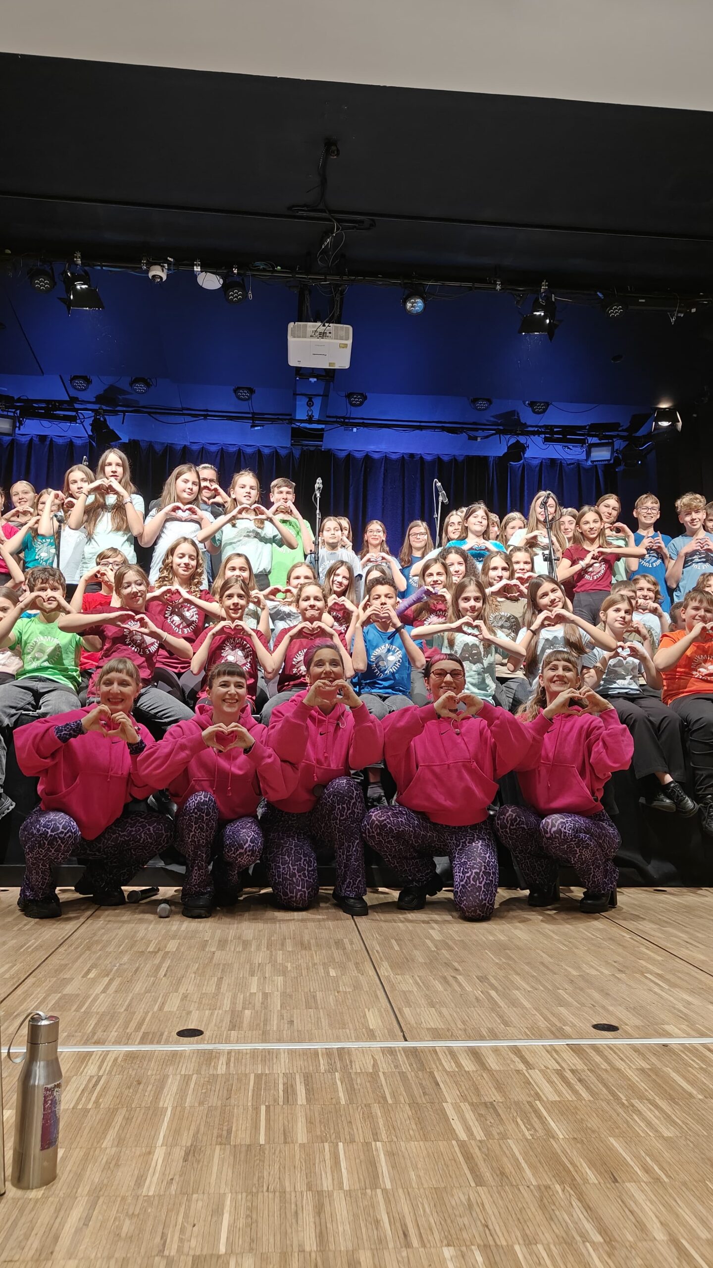 3 Stationen Betrieb für jede Workshop Gruppe. A-capella Sounds und Songbegleitung, Sologesang und Choreo und Beatbox durchtanzeten alle Kids von 6-10 Jahren um dann eine eindrucksvolle Abschlussperformance auf der Bühne der Volksschule…