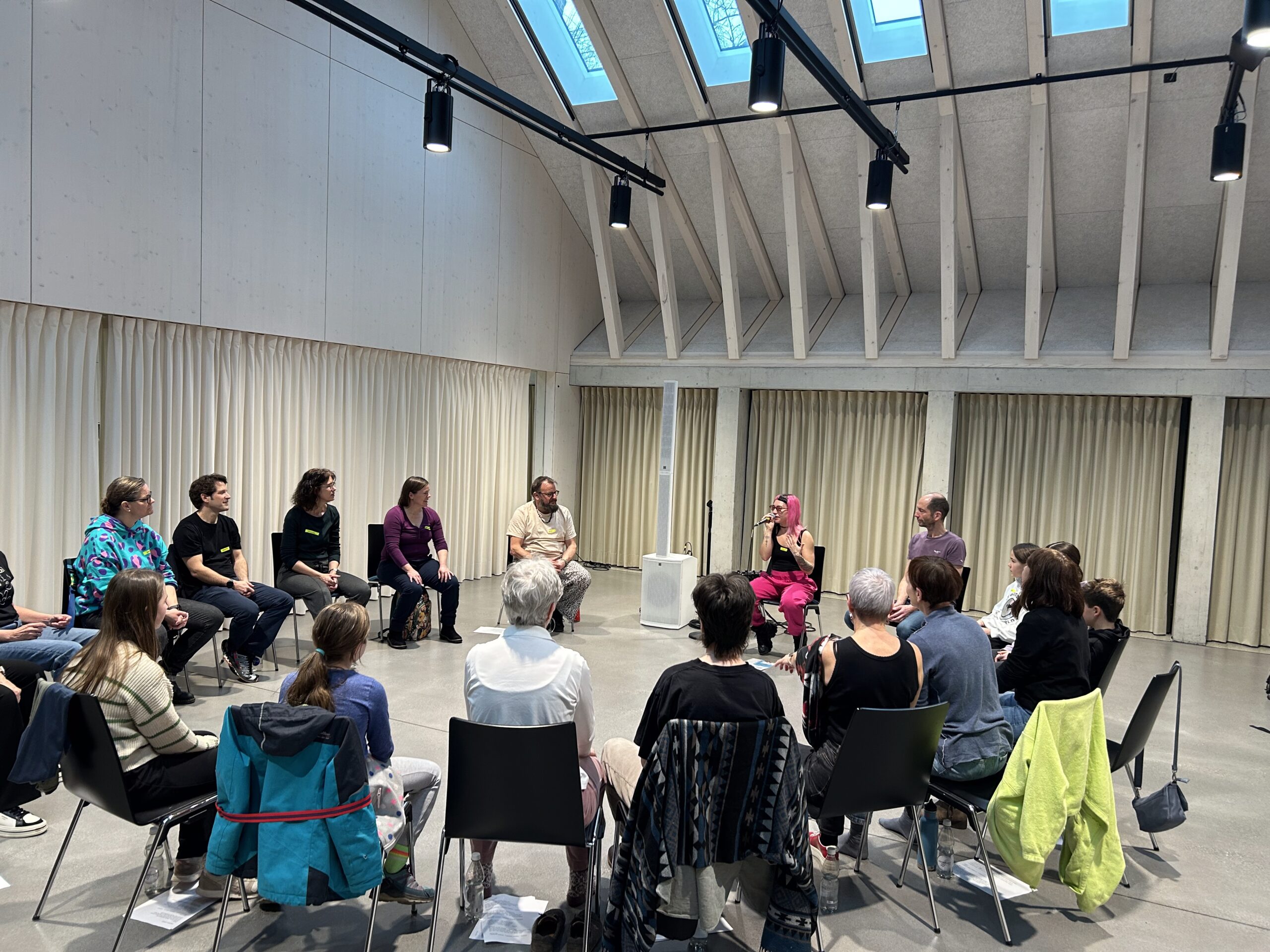 A-capella, Choreos und Beatboxen mit 18 SChweizer:innen, die neugierig in Sounds und B-T-K-T-Tssss und Pscht eintauchten. In nur einem Tag wurden 2 Songs einstudiert und auf die Bühne gebracht. I wanna Dance und I love it!!! Danke Obere Mühle für dieses wunderschöne Event!